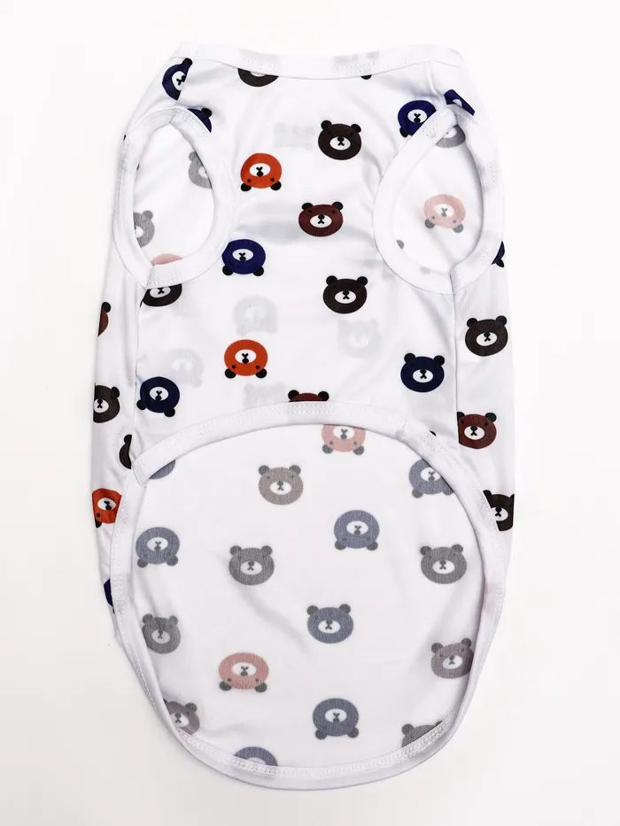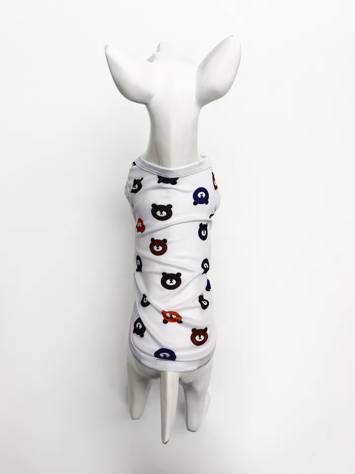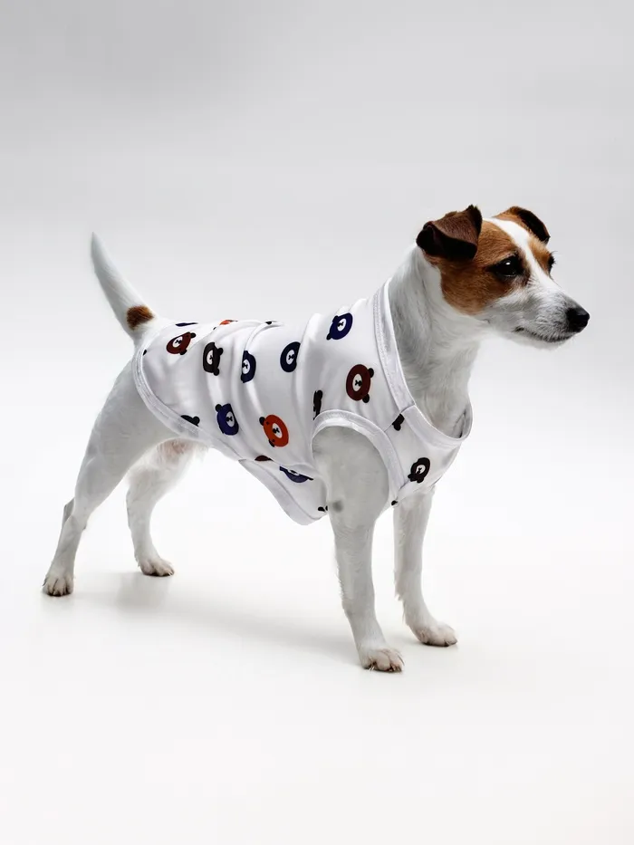 Белая футболка с милым принтом мишку в размере XL идеально подходит для крупных питомцев с обхватом груди 50 см и длиной спины 38 см. Стильное решение для создания праздничного образа.