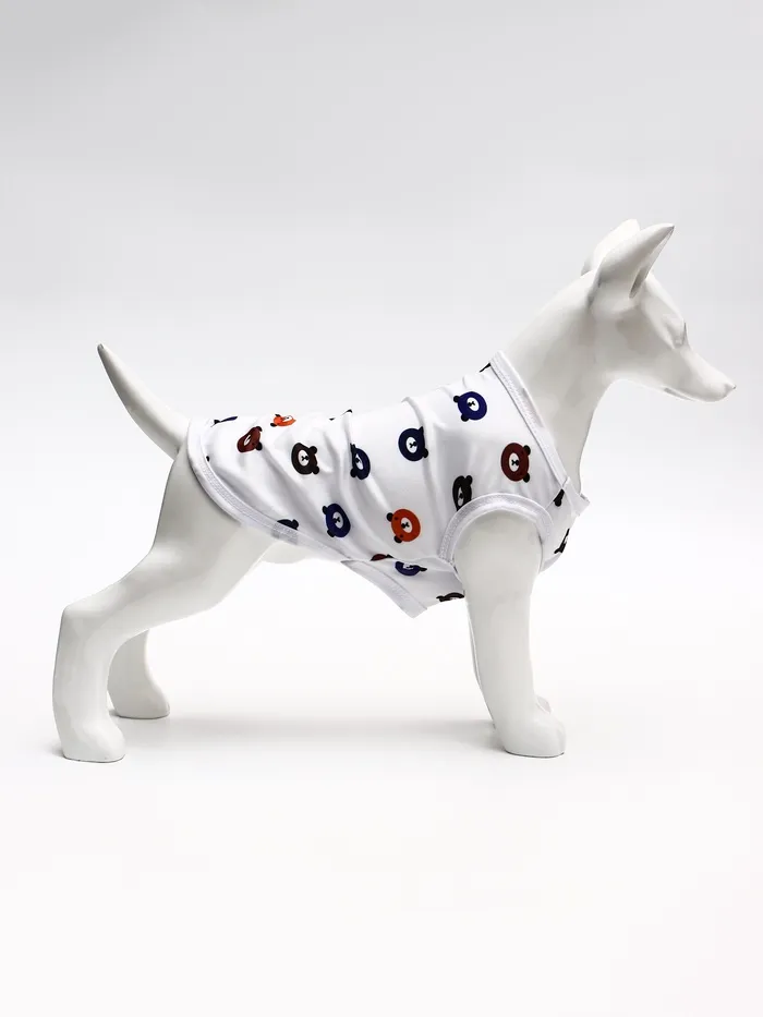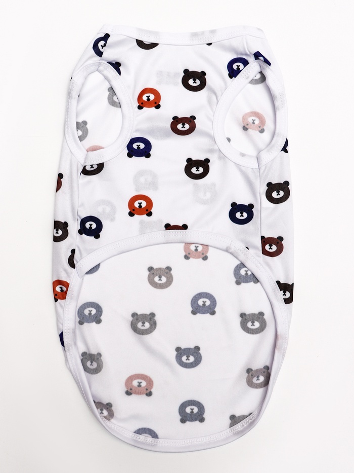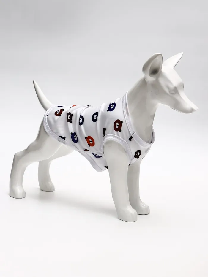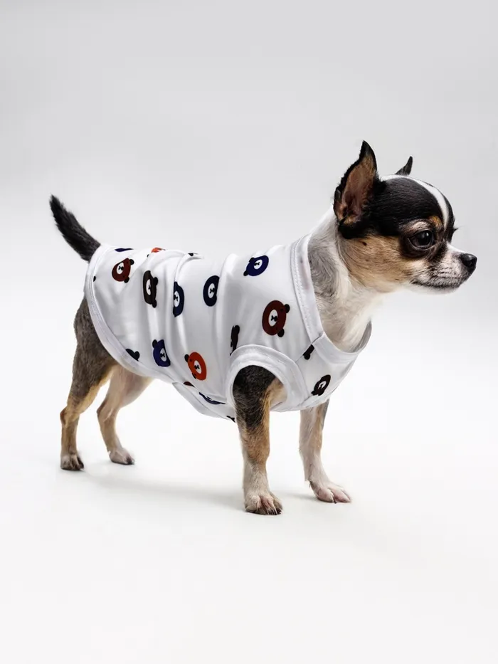Белая футболка с милым принтом мишку в размере S подойдет для маленьких питомцев с обхватом груди 38 см и длиной спины 25 см. Простое решение для создания уютного образа.