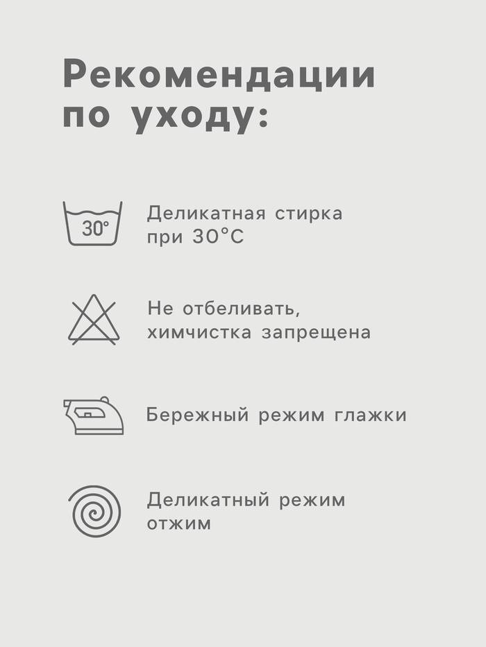 Рекомендации по уходу: Деликатная стирка при 30 °С