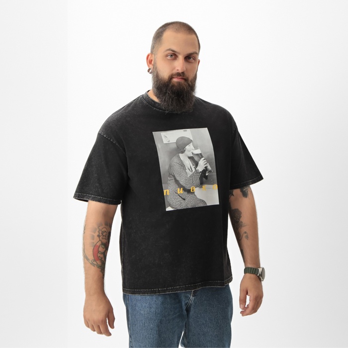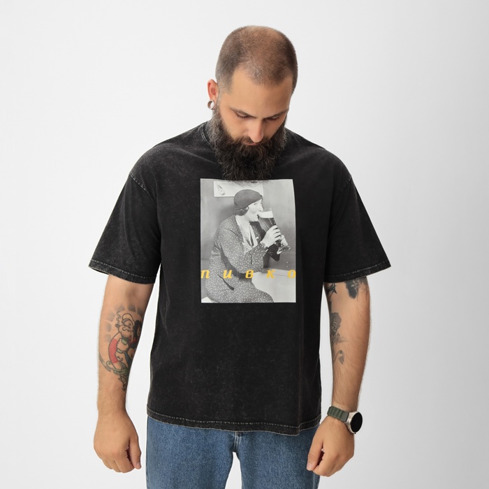 Футболка мужская MIST «Пивко» из вареного хлопка, черный, р-р L