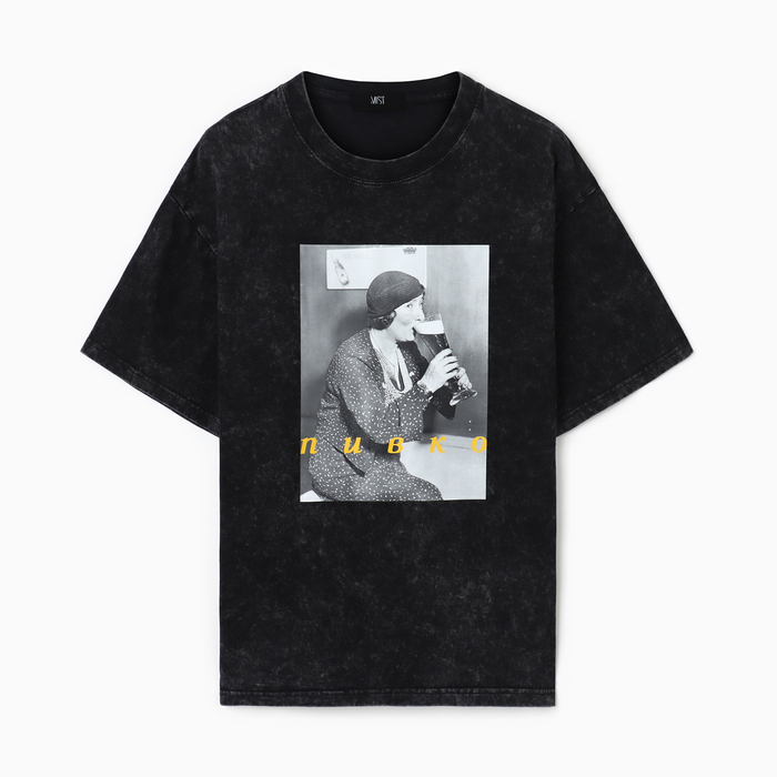Футболка мужская MIST «Пивко» из вареного хлопка, черный, р-р M