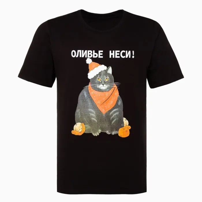 Футболка мужская новогодняя «Оливье неси», чёрная, размер 50 — Характеристики