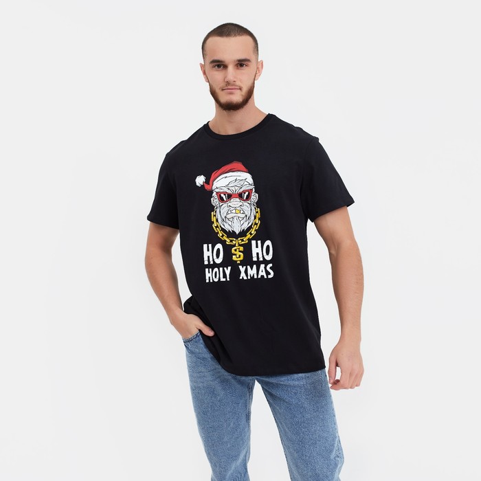 Футболка мужская новогодняя , цвет чёрный, размер 54 — Характеристики
