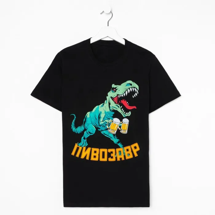Футболка мужская «Пивозавр», размер 56, хлопок 100%, чёрная — Характеристики