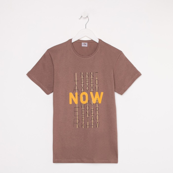 Футболка мужская с принтом, светло-коричневая, размер 44