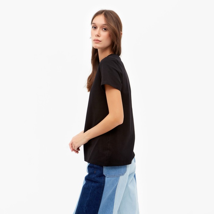 Футболка однотонная женская MINAKU: Basic line, чёрная, размер 52 — Характеристики