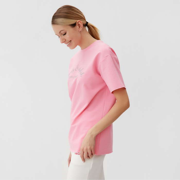 Футболка оверсайз женская MINAKU FIT: SPORTY & STYLISH, светло-розовая, размер 48