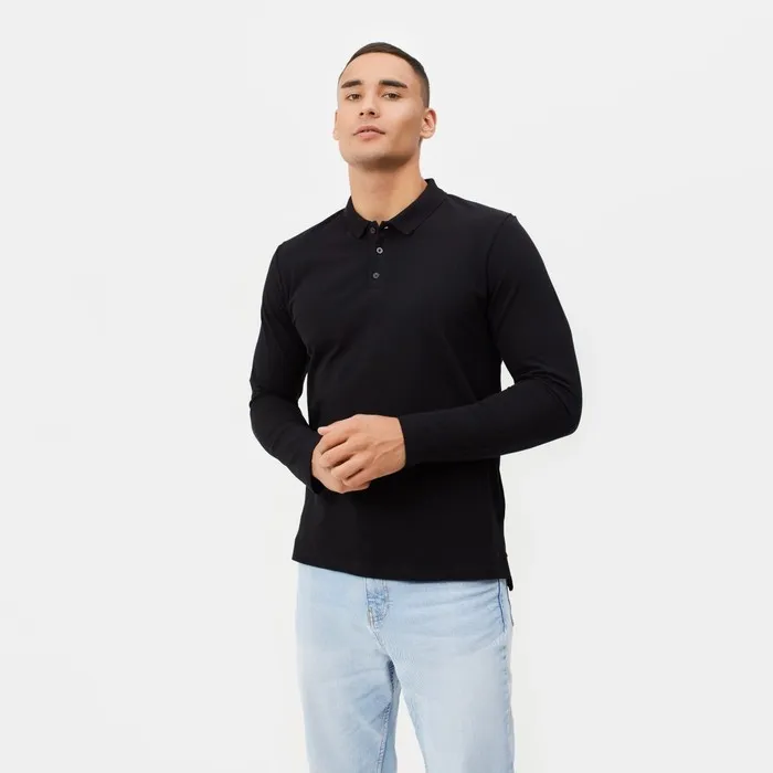 Футболка поло с длинным рукавом мужская MINAKU чёрная, р-р 52 — Характеристики