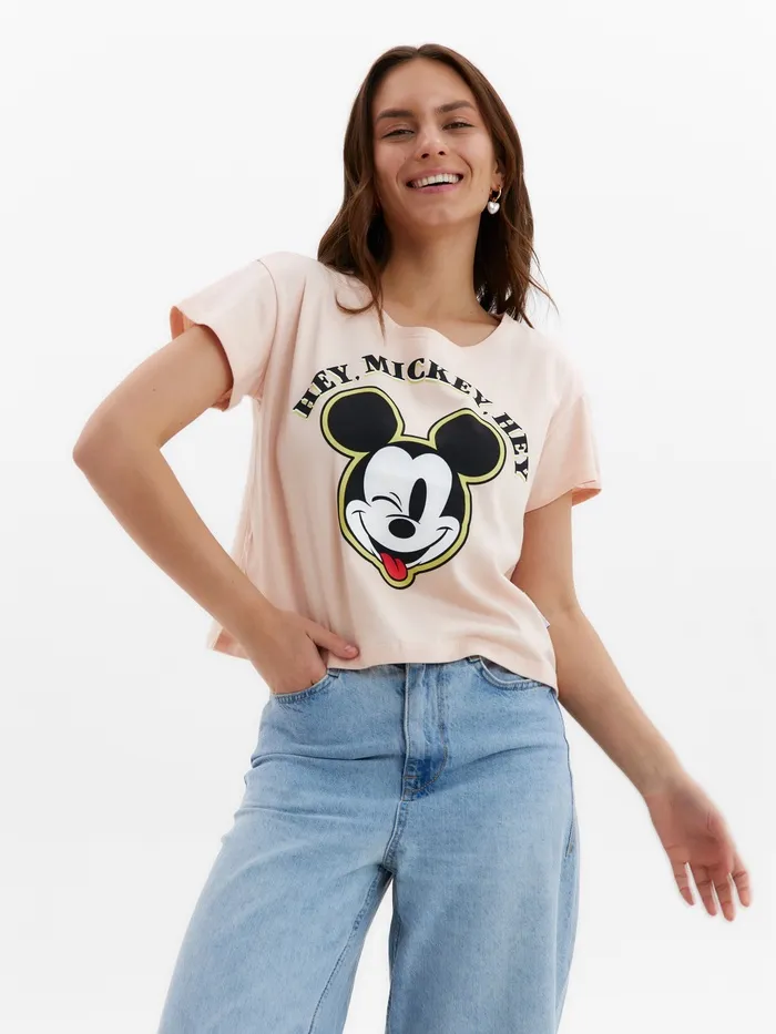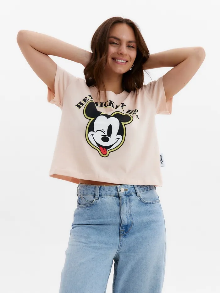 Футболка укороченная «Hey Мickey» Микки Маус, цвет розовый — Характеристики