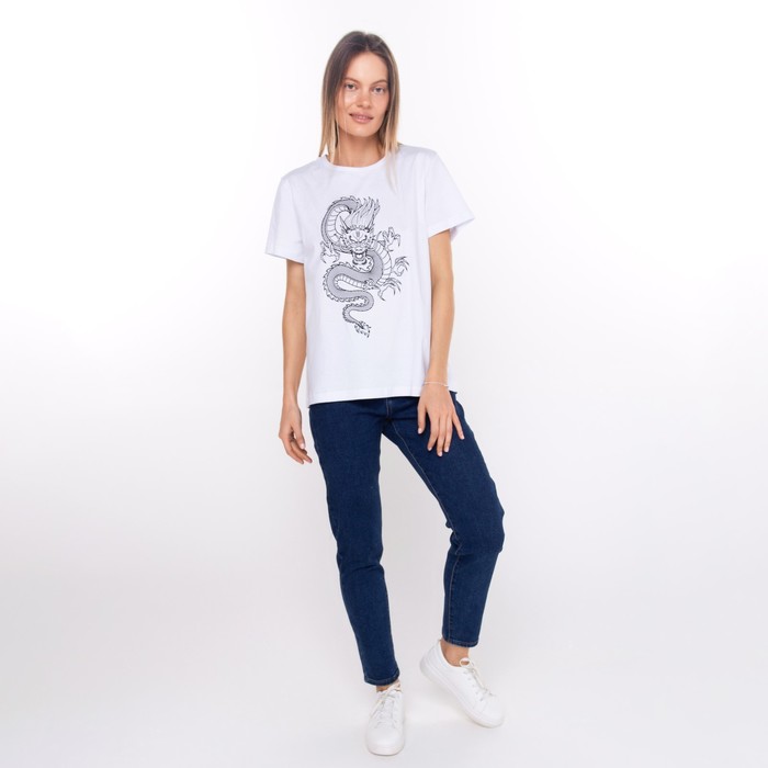 Футболка женская «Дракон», цвет белый/принт чёрный, размер 48