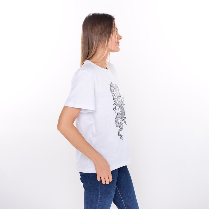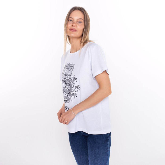 Футболка женская «Дракон», цвет белый/принт чёрный, размер 50