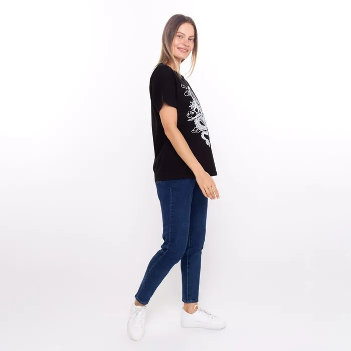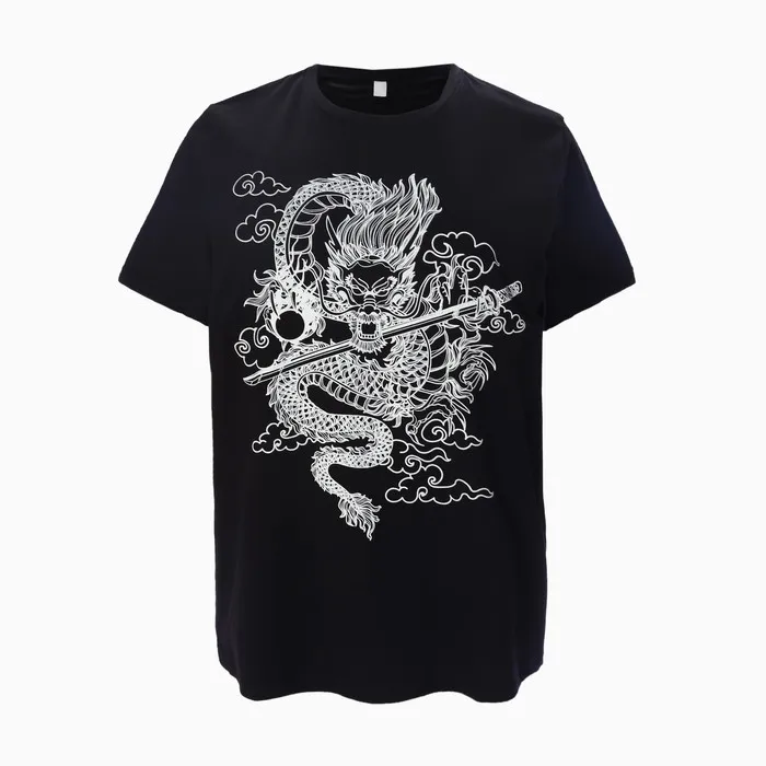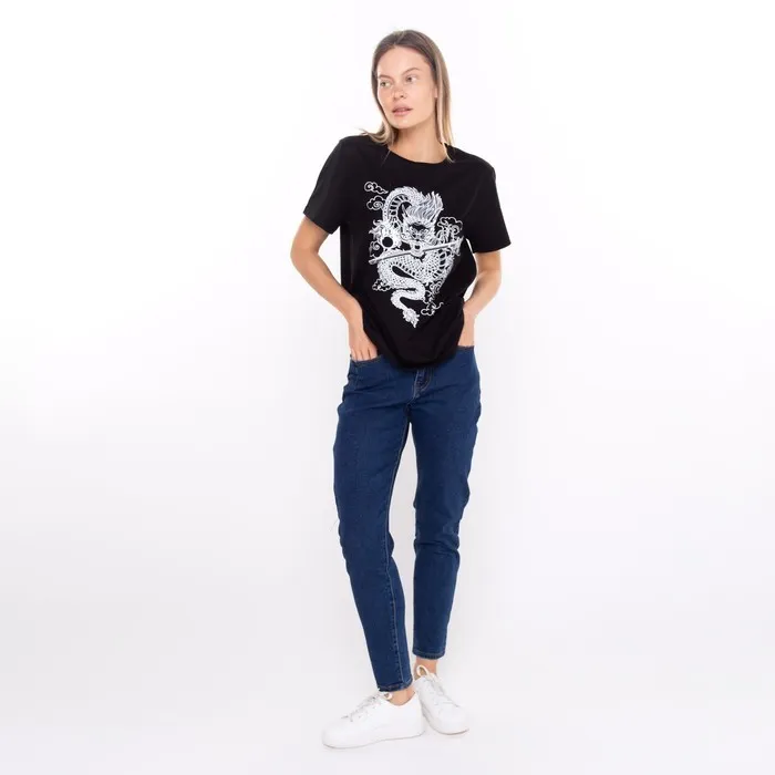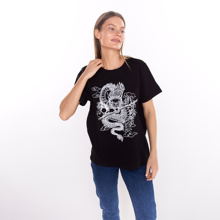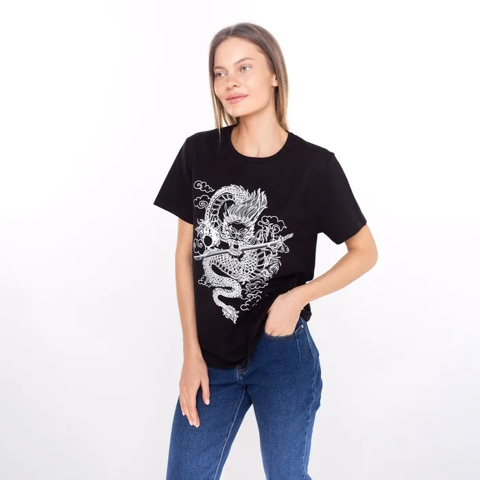 Футболка женская «Дракон», цвет чёрный/принт белый, размер 44 — Характеристики