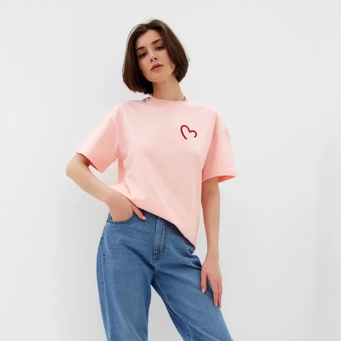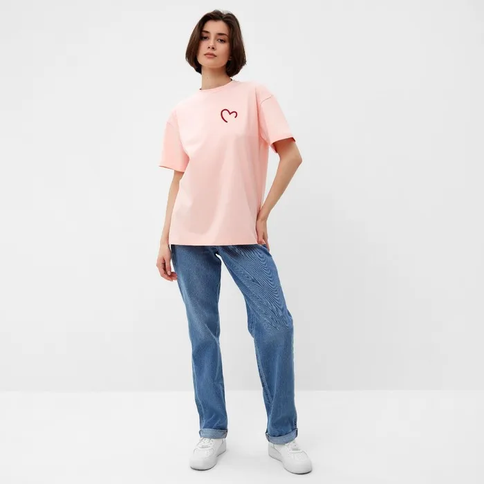 Футболка женская MINAKU "HEART" цвет персиковый, р-р 48 — Характеристики