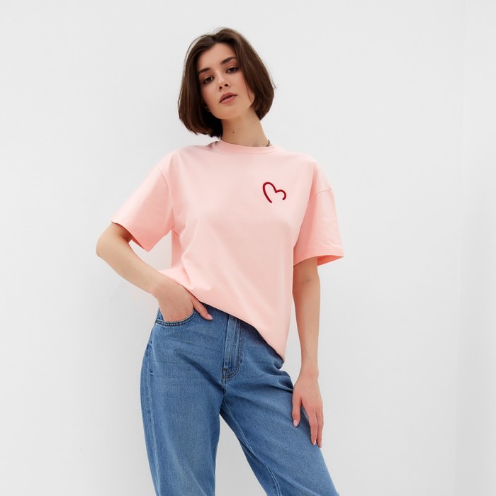 Футболка женская MINAKU "HEART" цвет персиковый, р-р 48