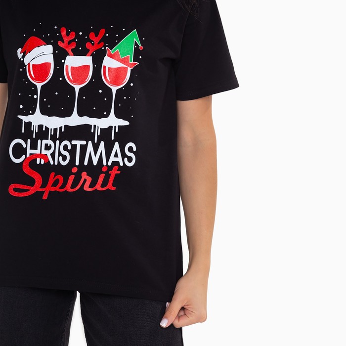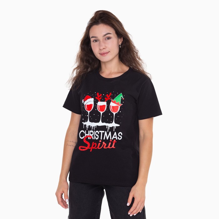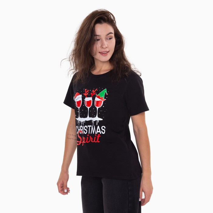 Футболка женская новогодняя «Christmas spirit», цвет чёрный, размер 52