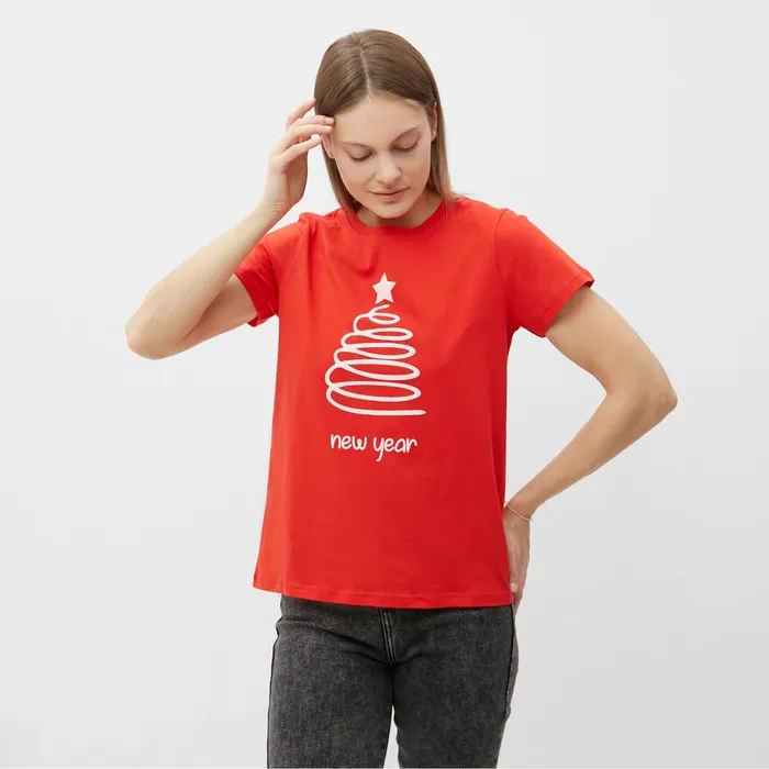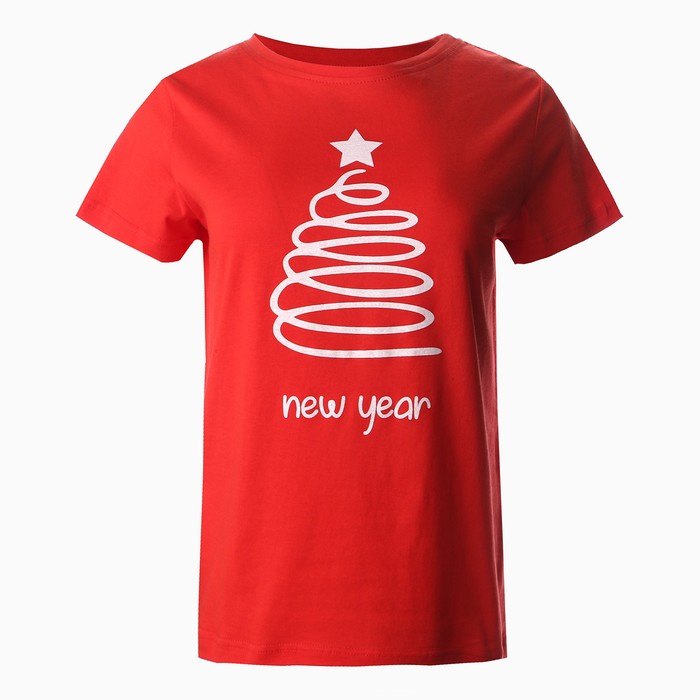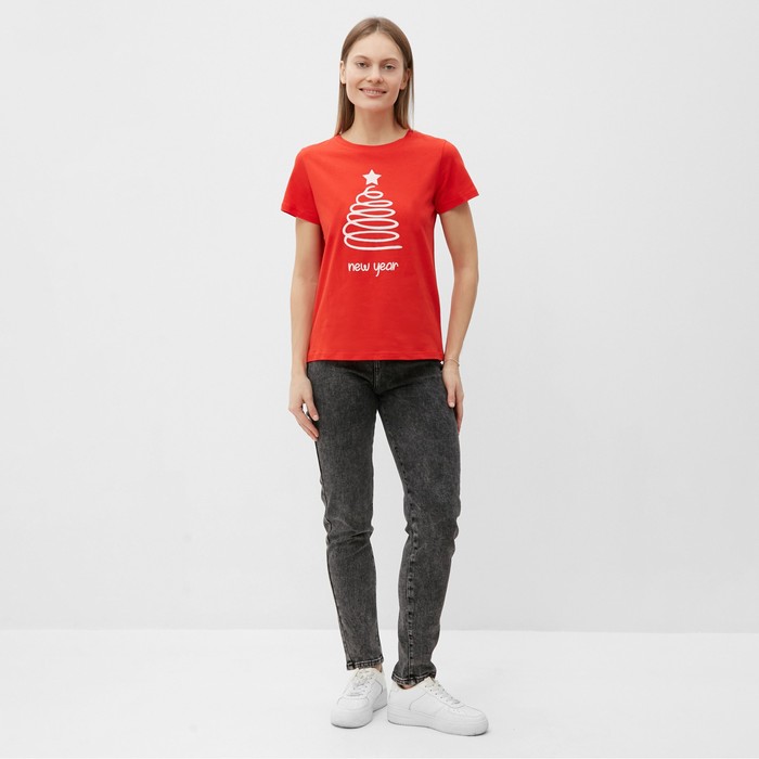 Футболка женская новогодняя "Ёлка", цвет красный, размер 54