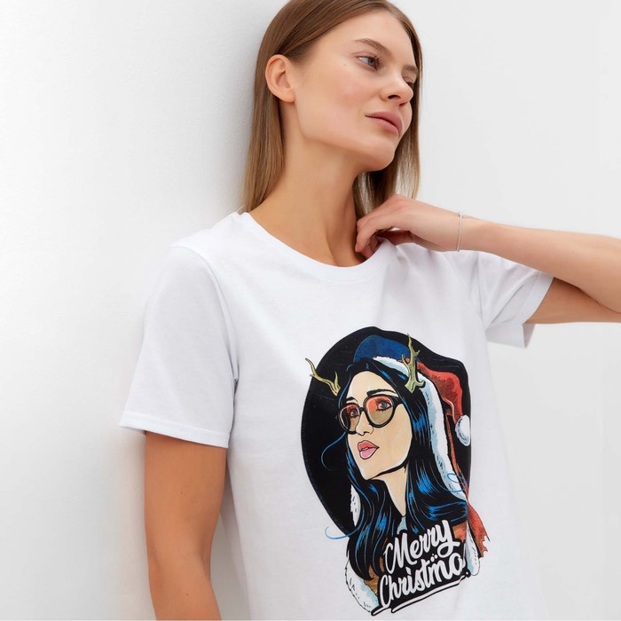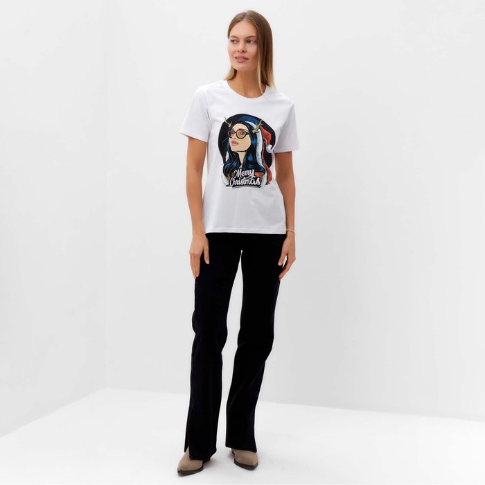 Футболка женская новогодняя Merry Christmas, цвет белый, размер 48 — Характеристики