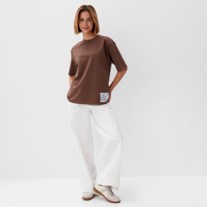Футболка женская однотонная MINAKU: One Most Brand цвет коричневый, размер 44 — Характеристики