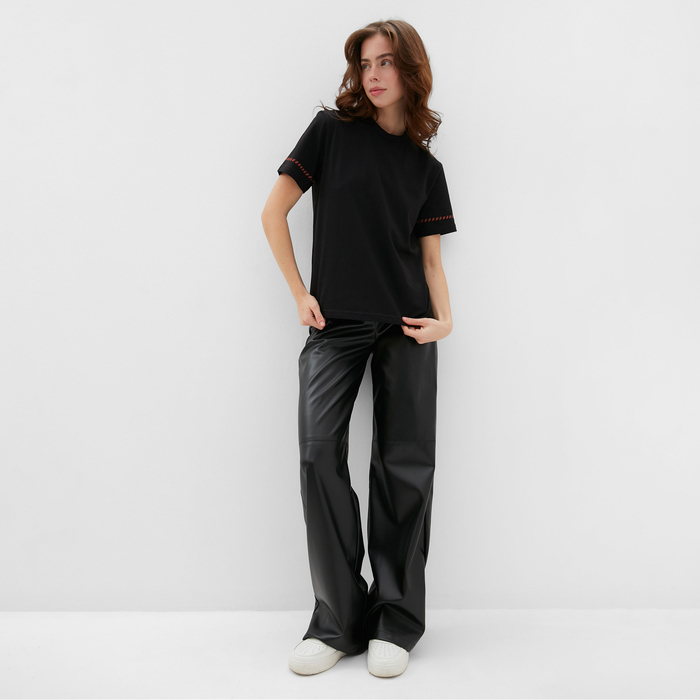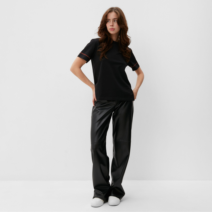 Футболка женская с красным кантом Basic line чёрная, р-р 50 — Характеристики