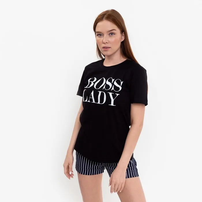 Футболка женская с принтом "Ladi Boss", цвет черный, размер 44 — Характеристики