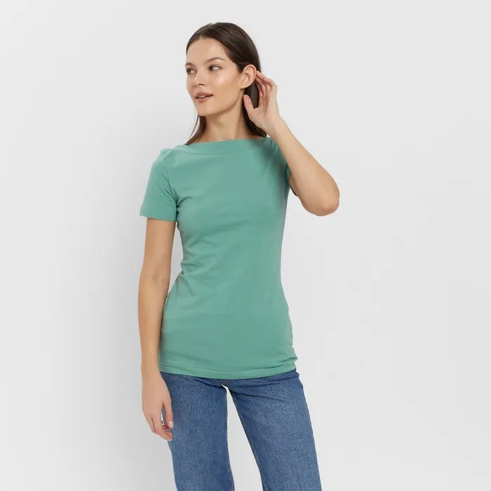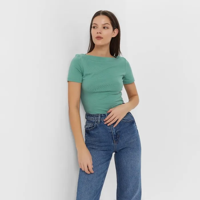 Футболка женская с вырезом лодочка MINAKU SLIM FIT: цвет оливковый, р-р 44 — Характеристики