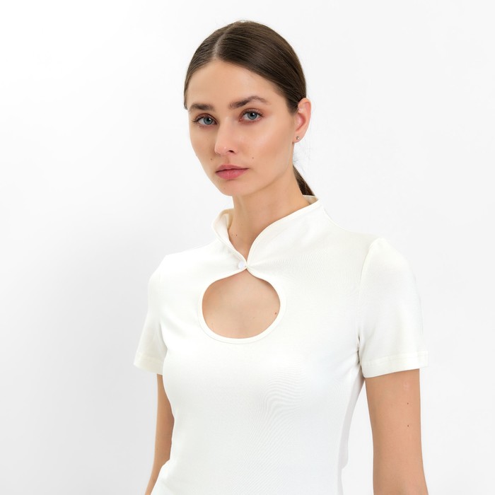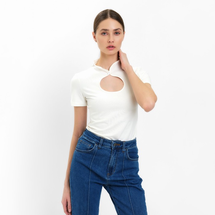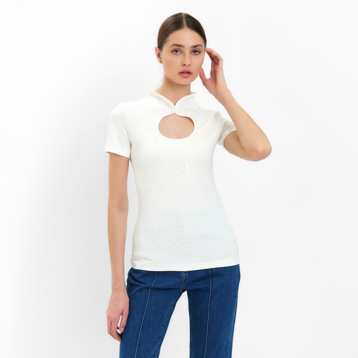 Футболка женская с вырезом MINAKU SLIM FIT: цвет экрю, р-р 46 — Характеристики