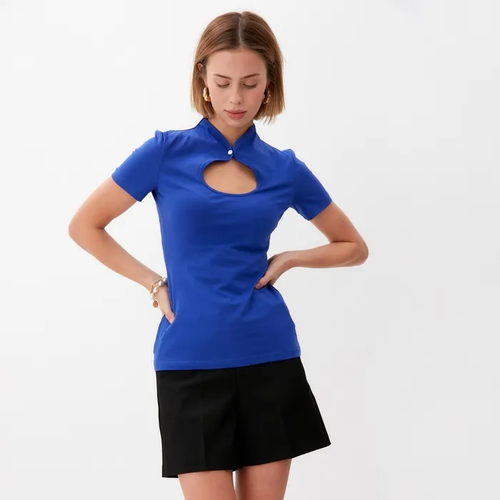 Футболка женская с вырезом MINAKU SLIM FIT: цвет синий, р-р 46 — Характеристики
