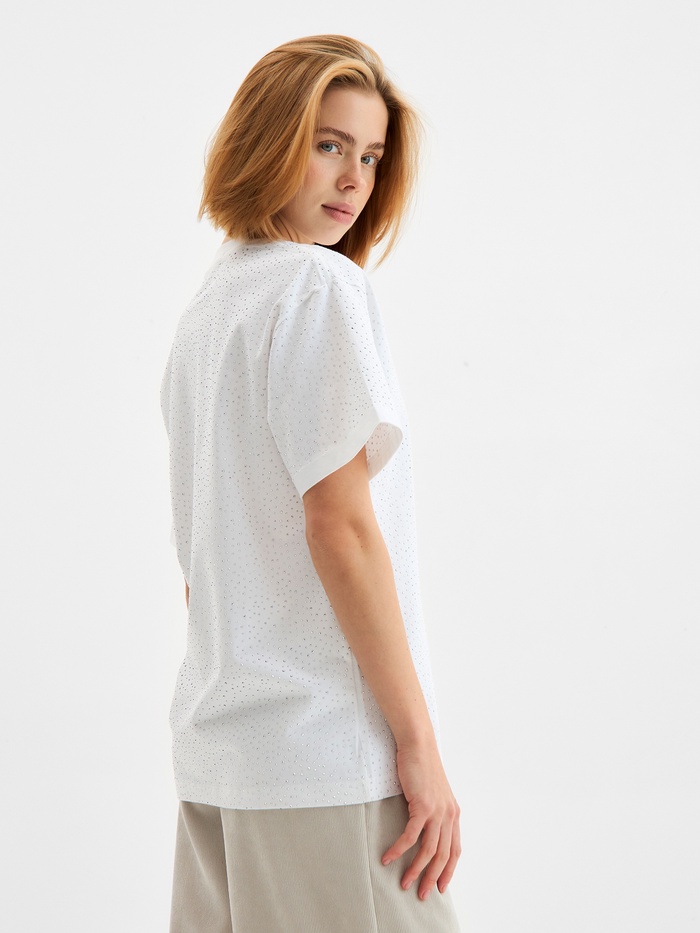 Футболка женская со стразами MIST, белая, размер L — Характеристики