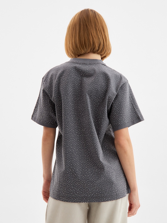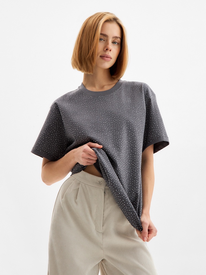 Футболка женская со стразами MIST, серая, размер M — Характеристики