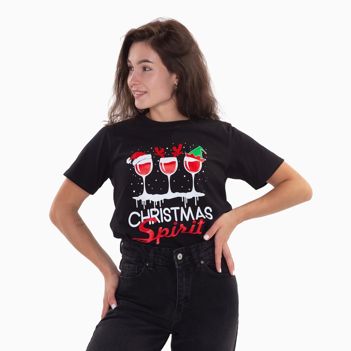 Футболка женская новогодняя «Christmas spirit», цвет чёрный, размер 52