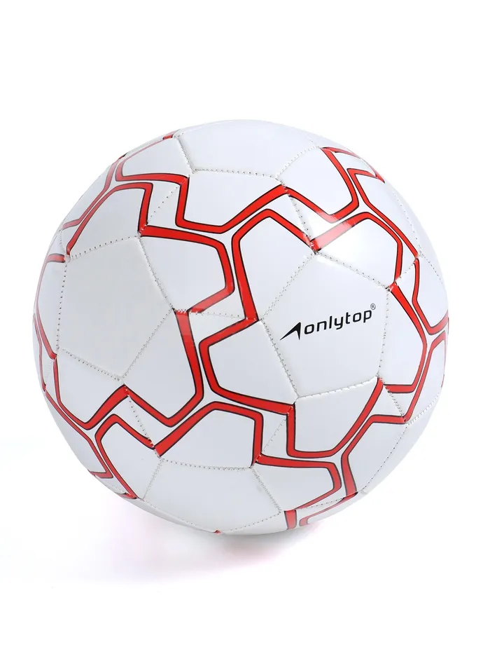 Футбольный мяч ONLYTOP, машинная сшивка, 32 панели, р. 5, PVC, резиновая камера, белый, красный