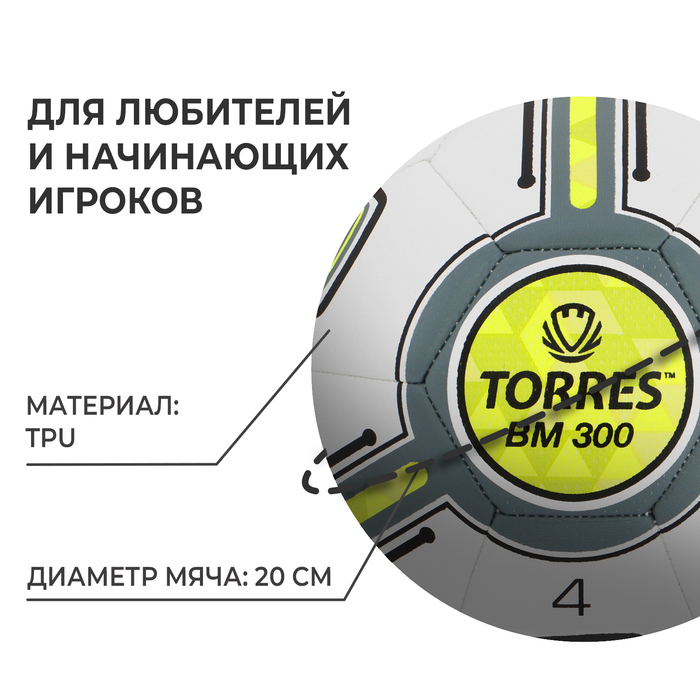 Мяч серии BM 300 в обновлённом дизайне рекомендуется для любителей и игроков начального уровня. Подходит для любых поверхностей, натуральных и искусственных газонов, полей с синтетическим покрытием различной степени жёсткости. Можно использовать в любых погодных условиях при соблюдении условий эксплуатации и ухода.