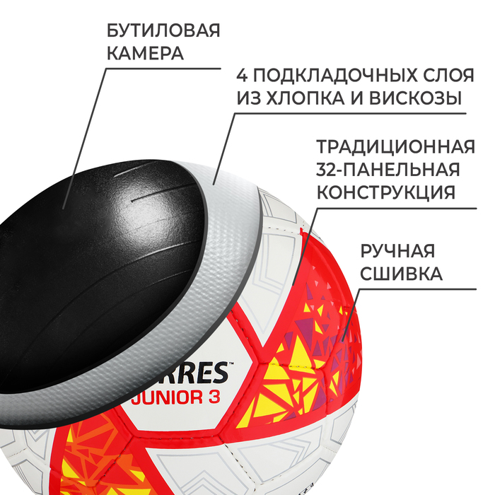 Модель мяча TORRES Junior-3 в обновлённом дизайне разработана для тренировок и игр детей до 8 лет. Облегчённый вес 290–310 г (по сравнению со стандартным 350–390 г) — оптимален для физической нагрузки ребёнка.