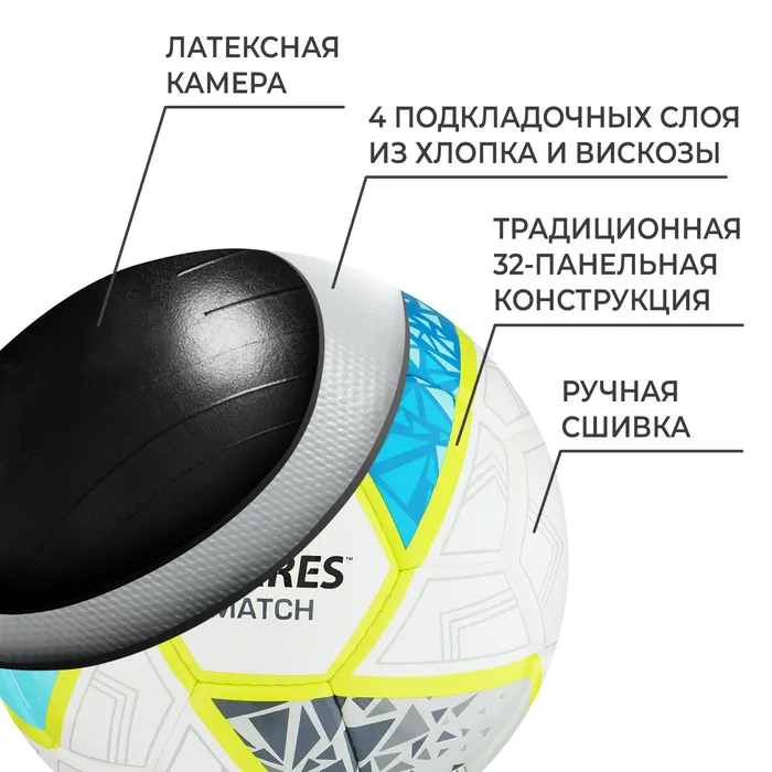 Мяч серии Match в обновлённом дизайне предназначен для проведения соревнований и командных игр среднего и любительского уровней. Подходит для интенсивных тренировок.