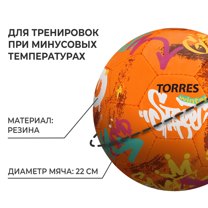 Мяч серии Winter Street в обновлённом дизайне предназначен для тренировки и игр на улице при температуре до –15 °C. Обладает высокой износостойкостью. Яркий цвет позволяет различить мяч на заснеженных площадках и играть им в условиях плохой видимости.