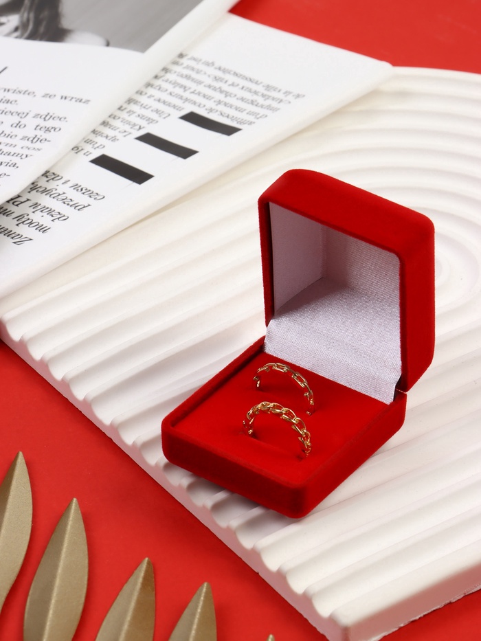 Размеры 5×4,5×3 см идеально подходят для двух колец, обеспечивая их надежное и безопасное размещение. Красный цвет добавляет глубины и праздника, при этом футляр выглядит аккуратно и изысканно. Внутреннее пространство футляра надежно сохраняет кольца, предотвращая их повреждения или царапины.