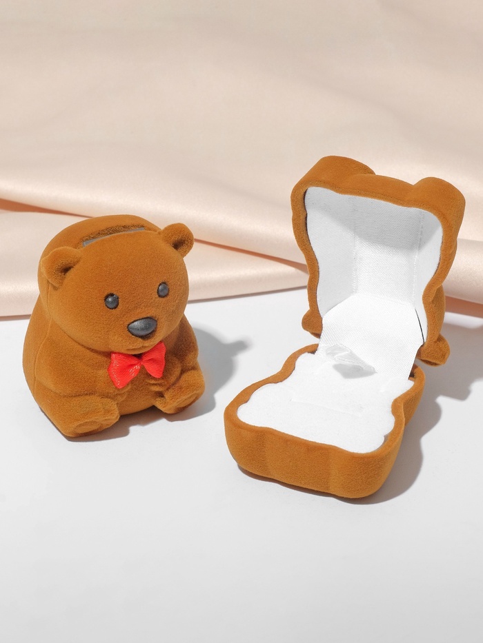 Футляр бархатный под кольцо "Медвежонок" с бантом, 4,6×5×3,5 см, цвет коричневый, вставка белая — это милый и оригинальный аксессуар для хранения кольца или другого небольшого украшения. Бархатная текстура придает футляру элегантность и мягкость, а забавная форма медвежонка с бантом добавляет игрушечный, но в то же время стильный акцент.