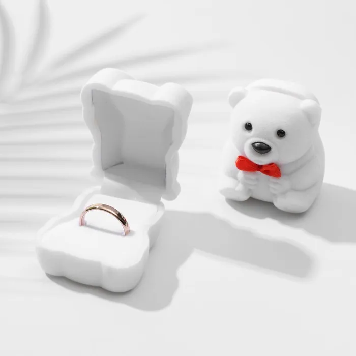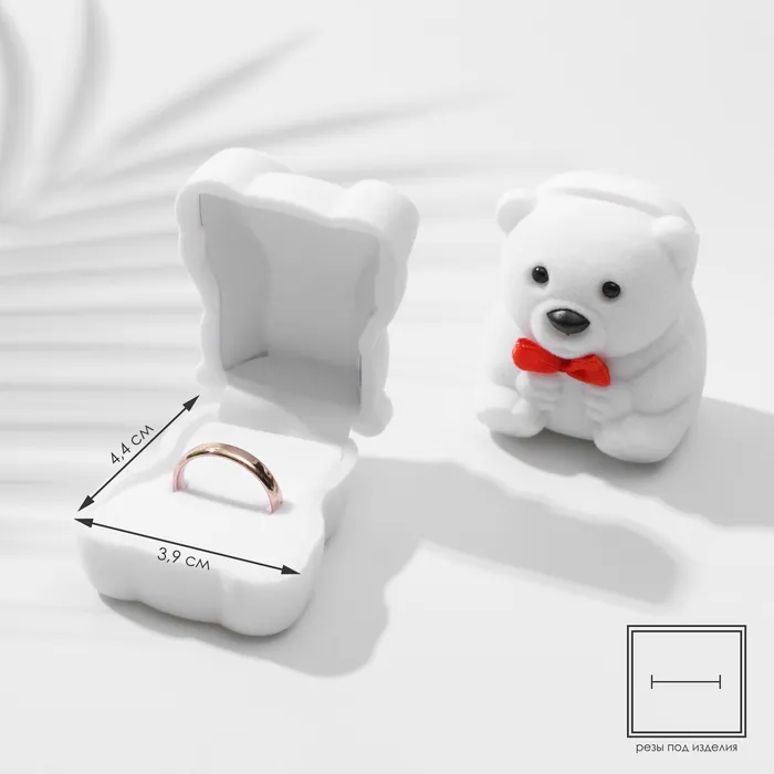 Футляр бархатный под кольцо/серьги «Мишка» 4,5×5×3,5, цвет белый — Характеристики