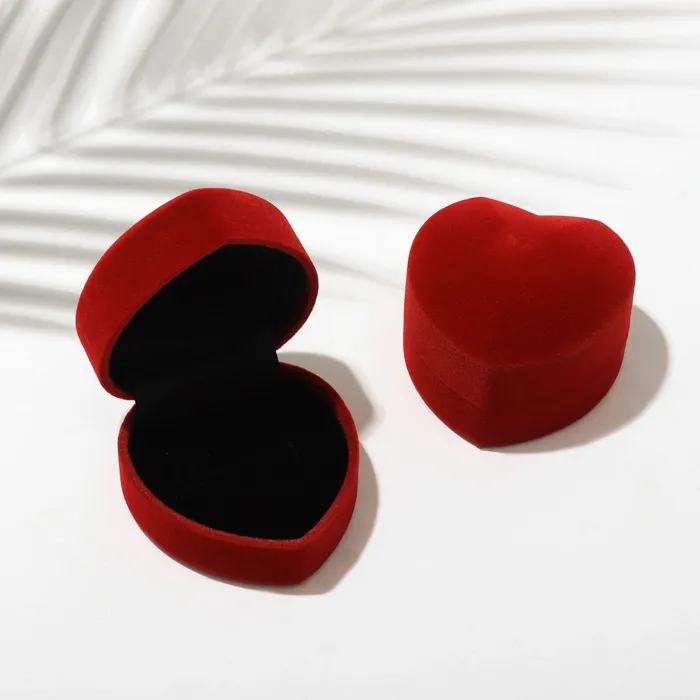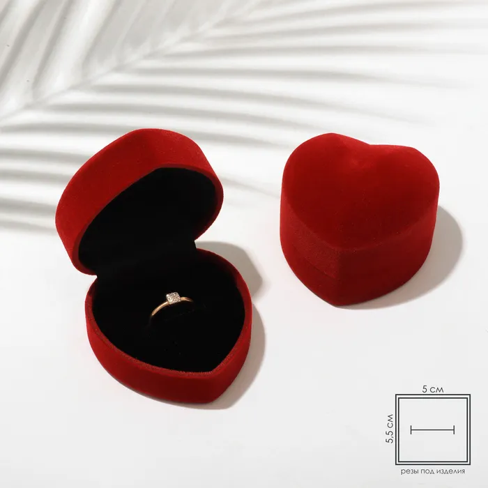 Футляр бархатный под кольцо/серьги «Сердце» 6×6.5×4, вставка черная, бордовый — Характеристики
