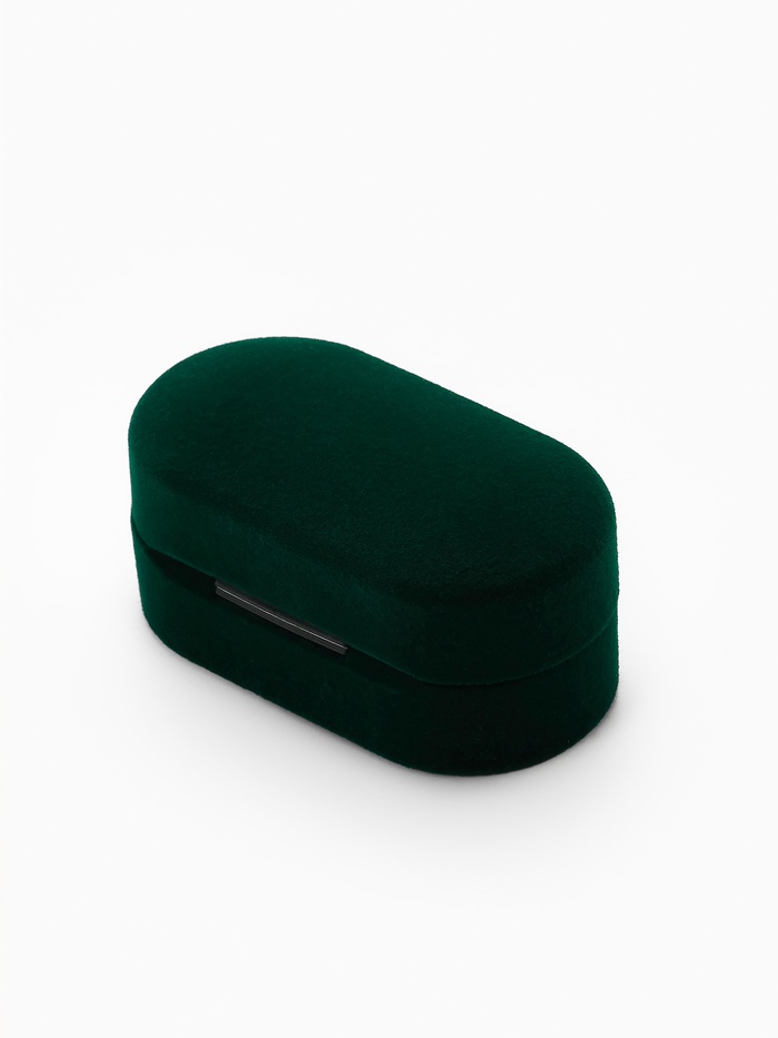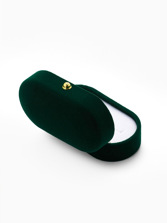 Футляр бархатный под серьги, кольца или запонки «Овал вытянутый», размером 7,5×4 см, цвет зелёный, вставка белая – это стильная и элегантная упаковка, которая идеально подходит для хранения и презентации ювелирных изделий. Бархатный материал придает футляру роскошный вид, а изысканный зелёный цвет в сочетании с белой вставкой создает утонченную и гармоничную комбинацию.