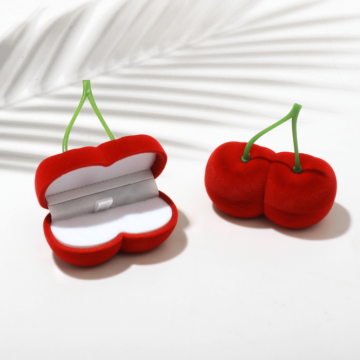 Футляр бархатный под серьги/кольца «Вишня», 7×6.5×3.5 см, красный, вставка белая — Характеристики