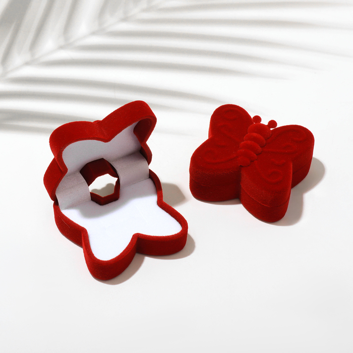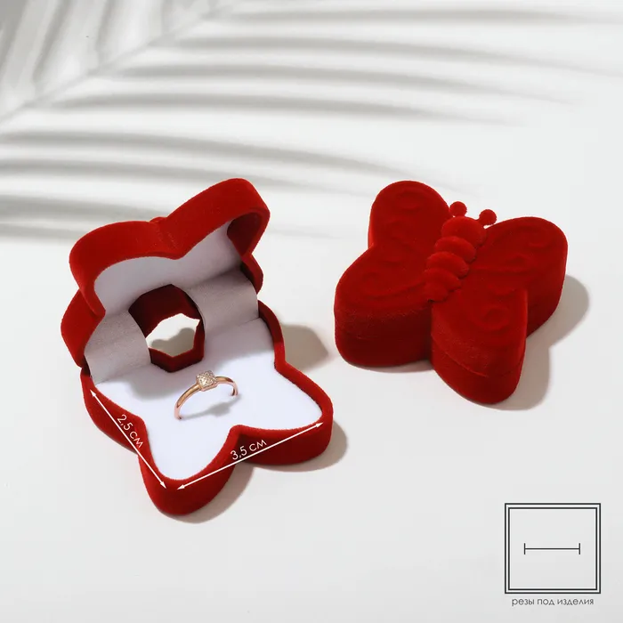 Футляр бархатный под серьги/кольцо «Бабочка», 5×5.5, красный, вставка белая — Характеристики