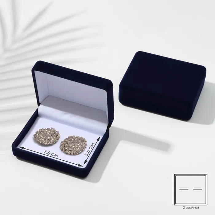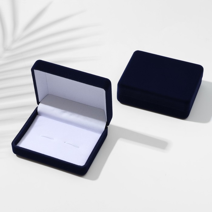 Футляр бархатный под серьги/запонки «Прямоугольник» 8×6×2,5, цвет серо-синий, вставка белая — Характеристики