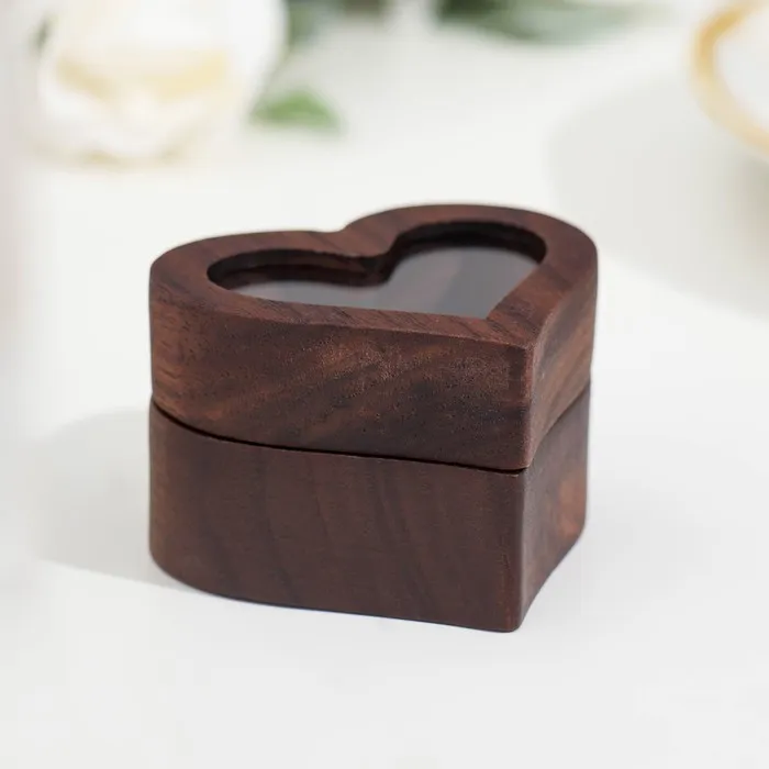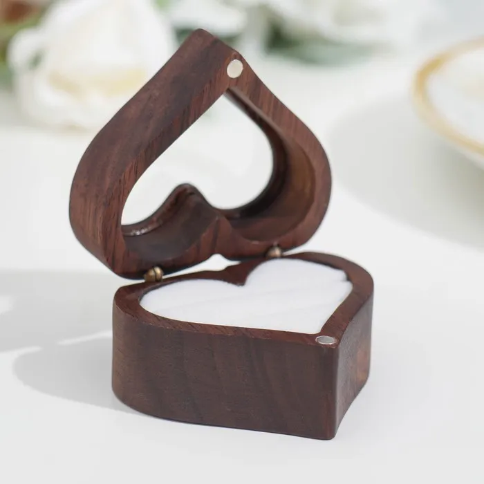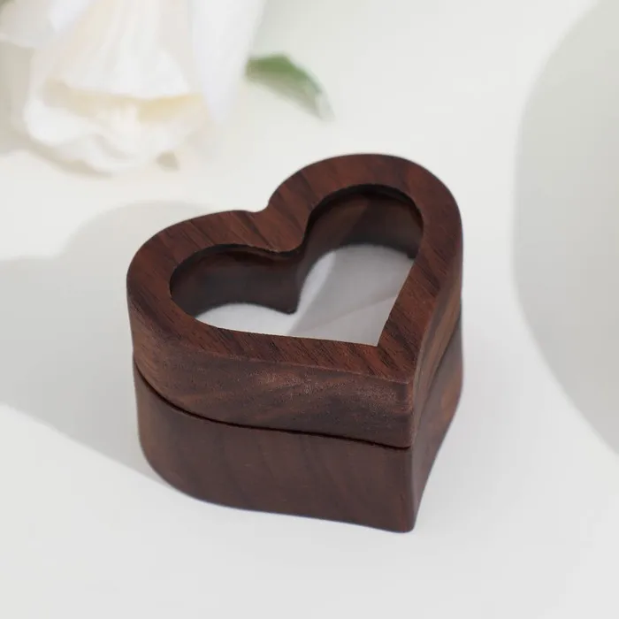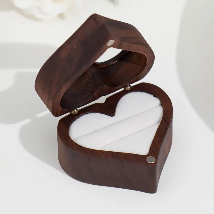 Футляр для колец «Сердце», шкатулка для украшений, белая подушка, тёмное дерево — Характеристики
