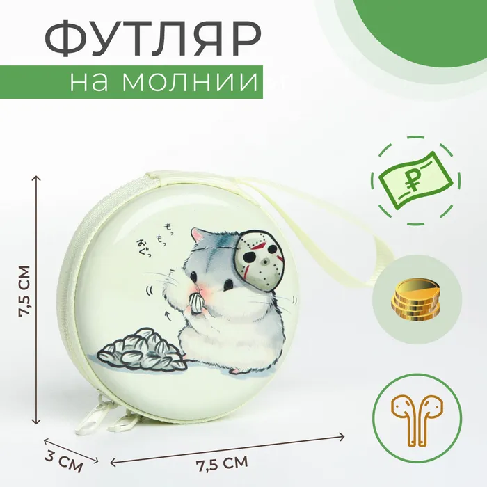 Футляр для монет, наушников «Хомячок», на молнии, белый — Характеристики