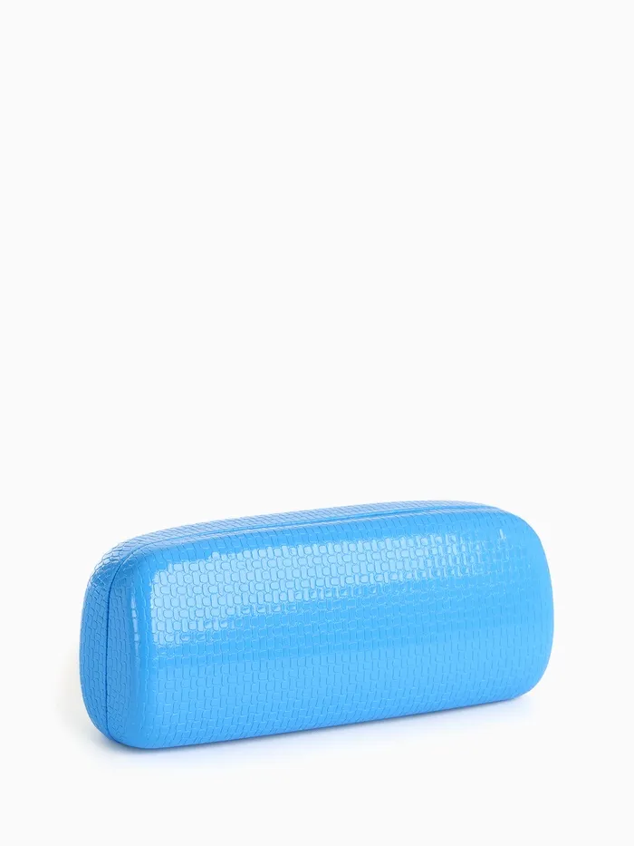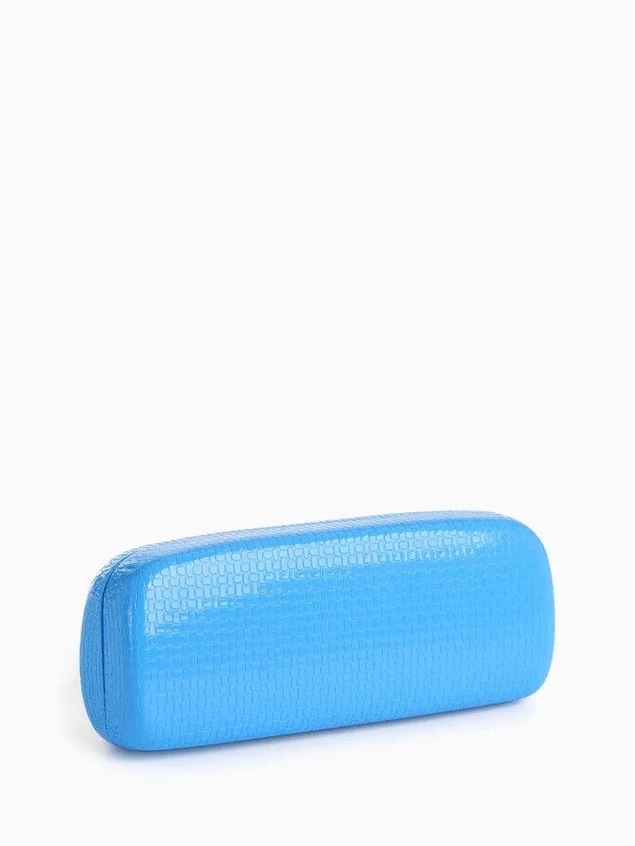Футляр для очков на хлопушке, длина 15 см, лаковая текстура, голубой — Характеристики