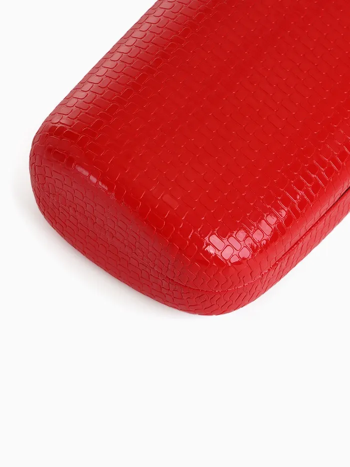 Футляр для очков красного цвета с хлопушкой. Изготовлен из искусственной кожи, длина 15 см. Жесткий корпус обеспечивает защиту ваших очков от повреждений. Лаковая текстура добавляет элегантности, делая его идеальным аксессуаром для женщины. Подходит для любой ширины очков до 15 см.