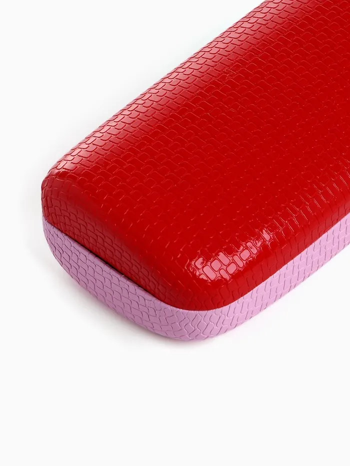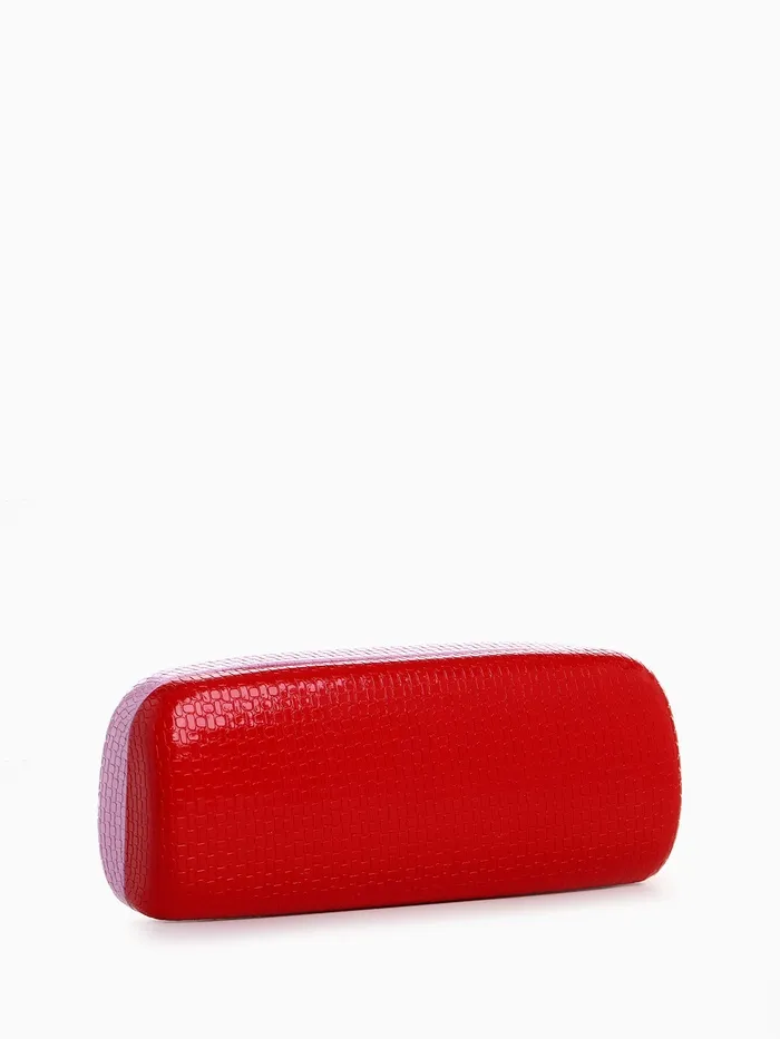 Футляр для очков на хлопушке, длина 15 см, лаковая текстура, розовый/красный — Характеристики