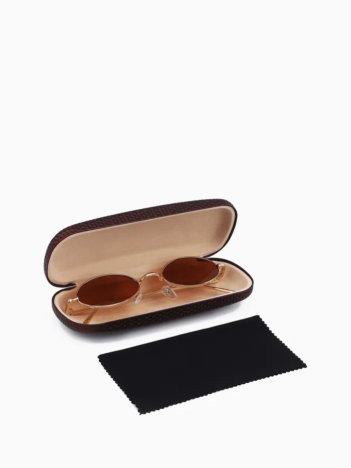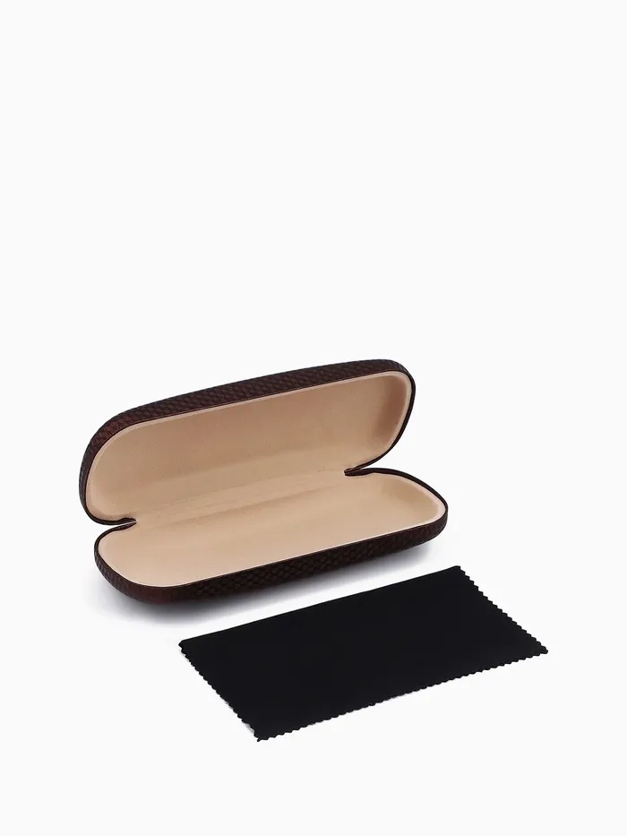Футляр для очков изготовлен из искусственной кожи, обеспечивающей стильный внешний вид и долговечность. Коричневый цвет подчеркивает элегантность и универсальность изделия. С длиной 16 см и шириной 6 см, он идеально подходит для стандартных размеров очков. Жесткий корпус на хлопушке защитит ваши линзы от царапин и повреждений. Исключительно для женщин, кто ценит стиль и комфорт.