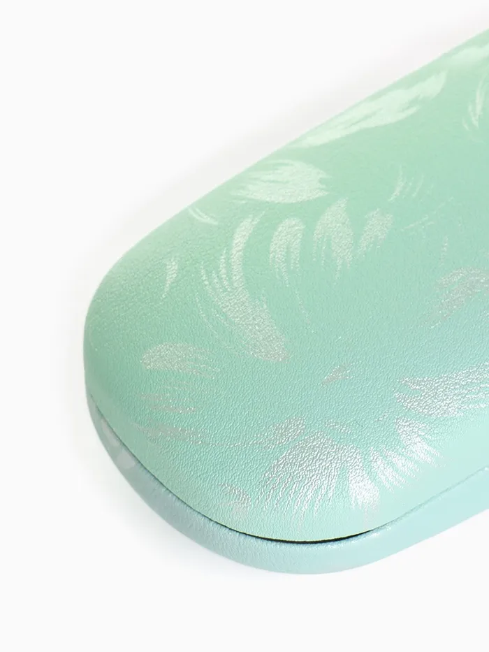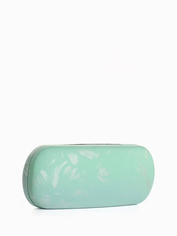 Жесткий футляр для очков на хлопушке с изысканным зеленым принтом «Цветы». Длина футляра составляет 16 см, что делает его идеальным аксессуаром для современной женщины, стремящейся подчеркнуть стиль и элегантность. Выполнен из прочной искусственной кожи, он обеспечивает надежную защиту ваших очков от повреждений и загрязнений.